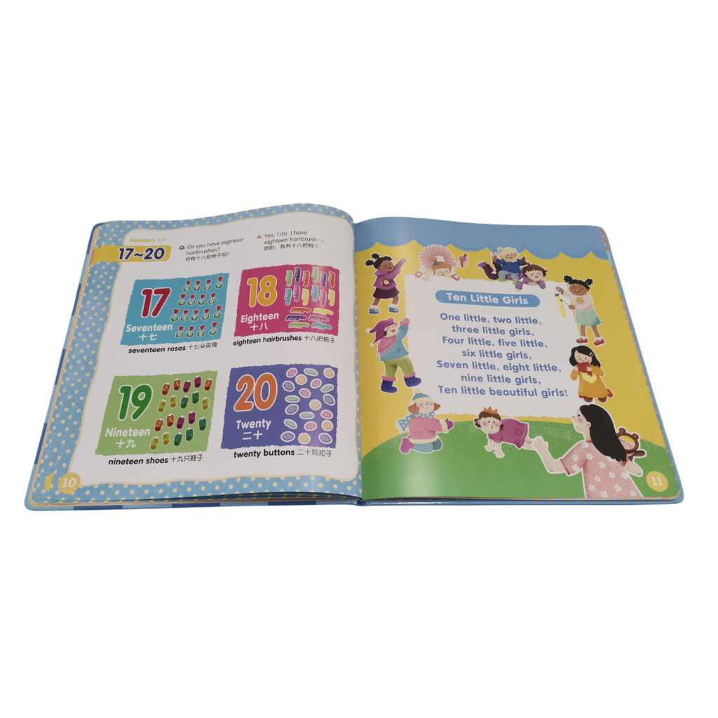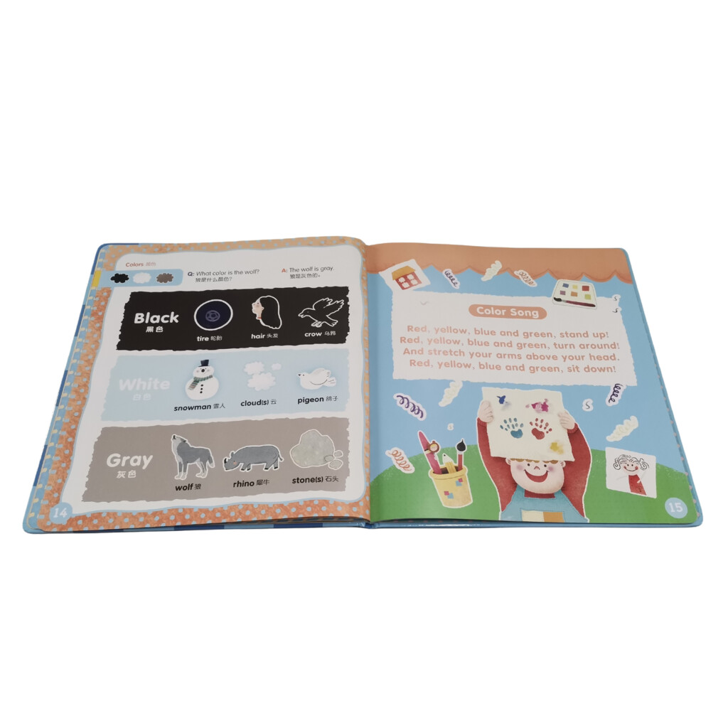 | Books content | Alphabets,Numbers,colors,Shapes,Body&feelings,Food,Toys&Instruments,Transportation,Animals. |